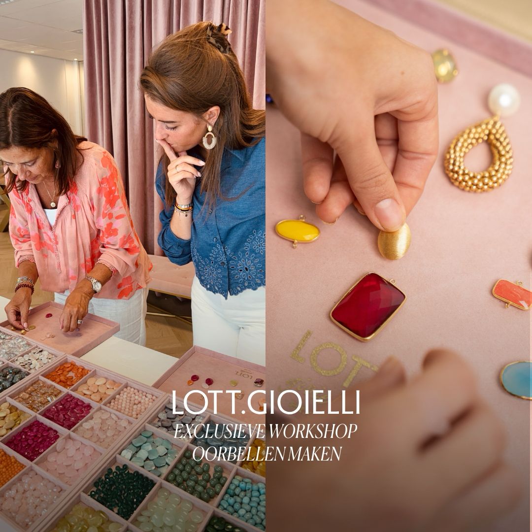 Workshop voor 6 personen met een hapje en een drankje.Tijdens deze creatieve workshop mag je je eigen LOTT.oorbellen ontwerpen en maken.