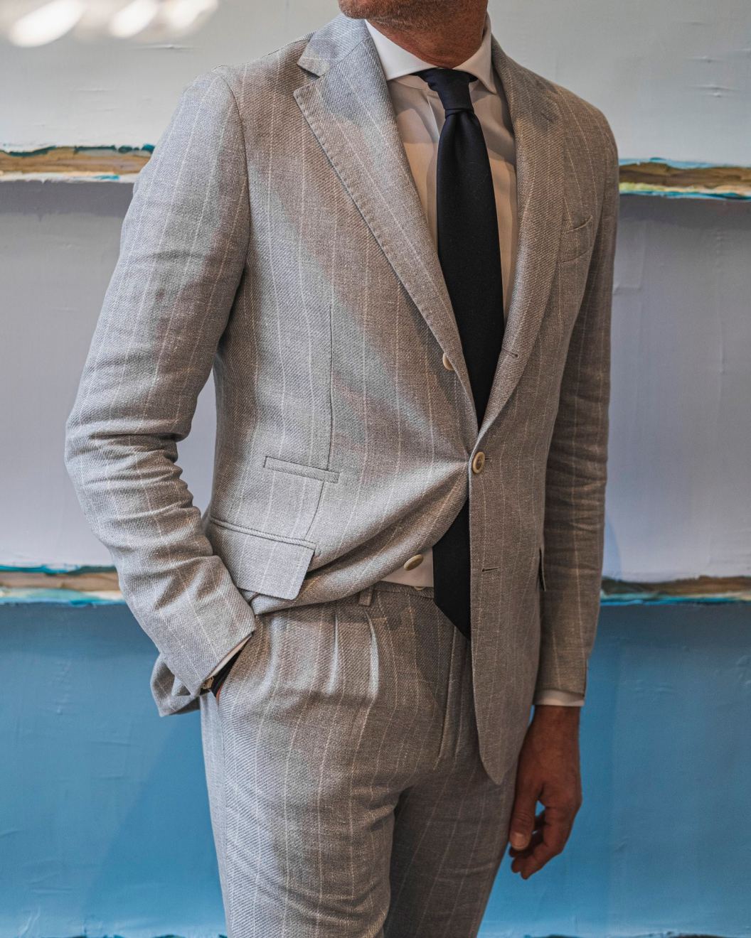Voor een maatpak begint het met het kiezen van de stof, zoals klassiek wol of luxe mengsels van zijde en kasjmier, afkomstig van top Italiaanse stoffenhuizen. Onze specialisten staan klaar om u te helpen bij het selecteren van de mooiste stoffen in diverse kleuren en dessins.